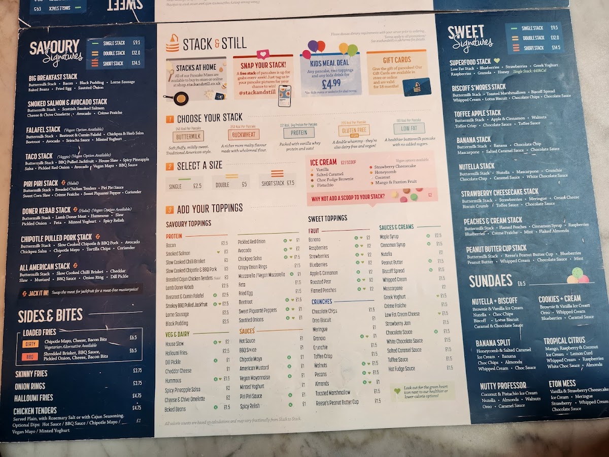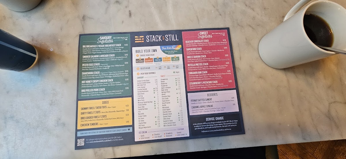 Introducing Stack & Still, a delightful culinary haven located in the heart of Glasgow at 100 W George St. This inviting restaurant specializes in gourmet pancakes, offering both sweet and savory options tailored to your cravings. With a warm atmosphere and friendly service, guests have praised their unique dishes, from the Superfood Stack topped with fresh fruits and Greek yogurt to the indulgent Biscoff S'mores Stack, brimming with toasted marshmallows and chocolate.
